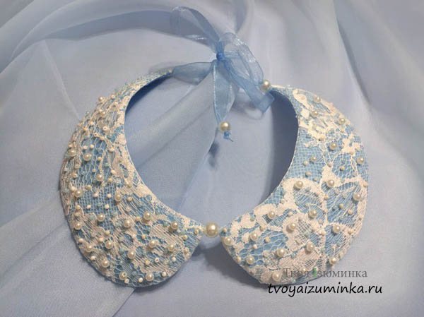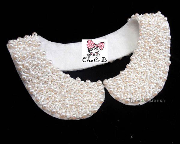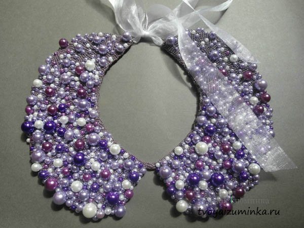 Впрочем, воротничок может быть сделан и из черного жемчуга, это не помешает одеть его с контрастного цвета вещью.