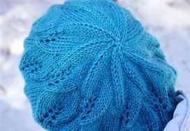 Берет вяжется на круговых спицах основным узором. Для начала набирается на спицы сто петель, провязываются четыре ряда, после чего начинают вязать резинкой один к одному восемь рядов. После этого, прибавляются пятьдесят шесть петель и вяжутся основным узором на высоту пятнадцать сантиметров, чередуя цвета.