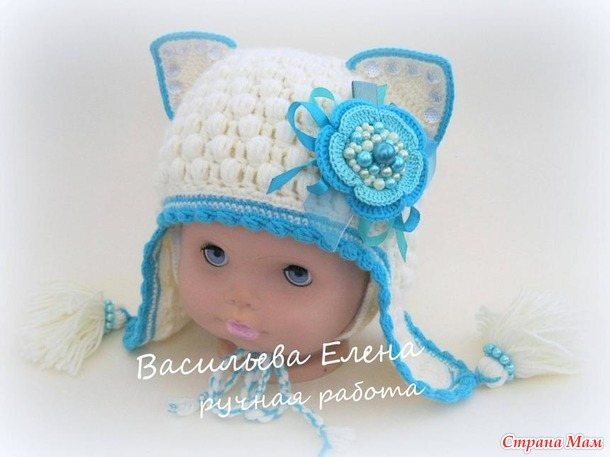 Видео — урок по вязанию шапки-кошки с ушками крючком