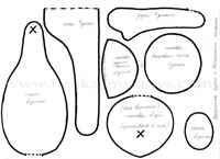 Голову шить по тому же принципу: выкроить, прострочить, вырезать, затем вывернуть и набить.