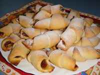 Случается так, что совсем нет времени идти в магазин для того, чтобы порадовать ребенка вкусненьким. Поэтому многие мамы пекут на скорую руку из подручного набора продуктов. Обычно такие рецепты пользуются большей популярностью, чем десерты с наворотами. Вот, например, рогалики. Из всего продуктового набора необходимо: сахарная пудра на посыпку, любой конфитюр, 500 грамм муки и 300 грамм маргарина и сметаны.