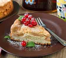 Шарлотка с яблоками и творогом на сметане получается очень нежной и ароматной. Она отлично подойдет как для семейного чаепития, так и для праздничного стола. Приятного аппетита!