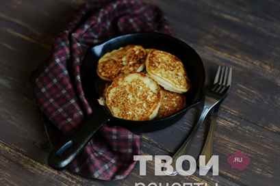 - На сковороде разогрейте масло и выкладывайте тесто ложкой, формируя оладьи. Жарьте с обеих сторон до золотистой корочки.