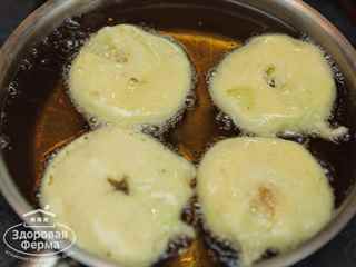 Далее пришло время подготовить яблоки, для этого их необходимо помыть, очистить от кожуры, сердцевины и нарезать кружочками (не очень тонкими). В емкости с толстым дном надо нагреть масло, обмакнуть яблоко в тесто и жарить 5-6 минут, пока тесто не станет золотистым.
