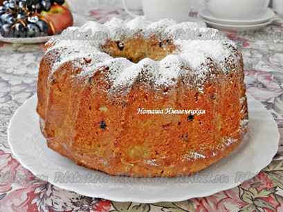 Когда кекс будет готов, остужаем его и посыпаем сверху сахарной пудрой либо натертым горьким шоколадом.