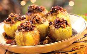 Яблоки с медом, изюмом, орешками и корицей