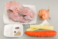 Приготовьте все ингредиенты: свиной язык, воду, сельдерей, морковь, репчатый лук, лавровый лист, душистый перец и соль.