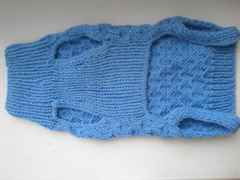 - Перейдите к основному узору. Например, можно использовать лицевую гладь или комбинировать с узором «косы». Вяжите до тех пор, пока длина изделия не достигнет нужного размера (обычно 20-30 см в зависимости от длины спины собаки).