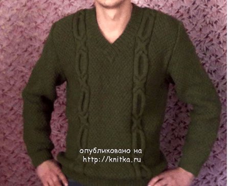 Мужской свитер 48 размера выполняется из 600 граммов полушерстяной пряжи.